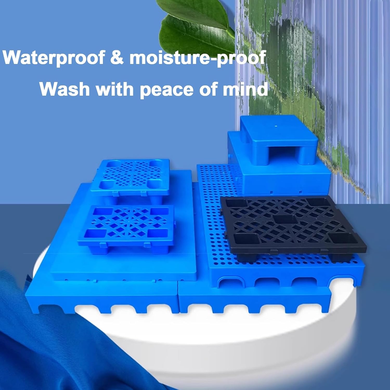 Features:1. Combinable and splicable, more sizes can be obtained through combination2. 10CM off the ground, meeting moisture-proof requirements3. The entire cushion body is hollow, no water accumulation, and air circulation can be maintained even when goods are stacked for a long time4. Goods are stacked evenly to ensure the load-bearing area of the pallet, fully disperse the weight, and extend the service life. Dynamic loading is not recommended.Package Contents: Plastic Pallet x1Name: Plastic PalletMaterial: High Density Polyethylene (HDEP)Size:40x30x10cm(15.7x11.8x3.9in) , 40x40x10cm(15.7x15.7x3.9in) , 50x40x10cm(19.6x15.7x3.9in) , 60x40x10cm(23.6x15.7x3.9in)Load-bearing: 1200 lbs/㎡Application: Pallets are used in basements, garages, warehouses, storage rooms, manufacturing and transportation facilities and other industrial environments; waterproof and moisture-proof.
