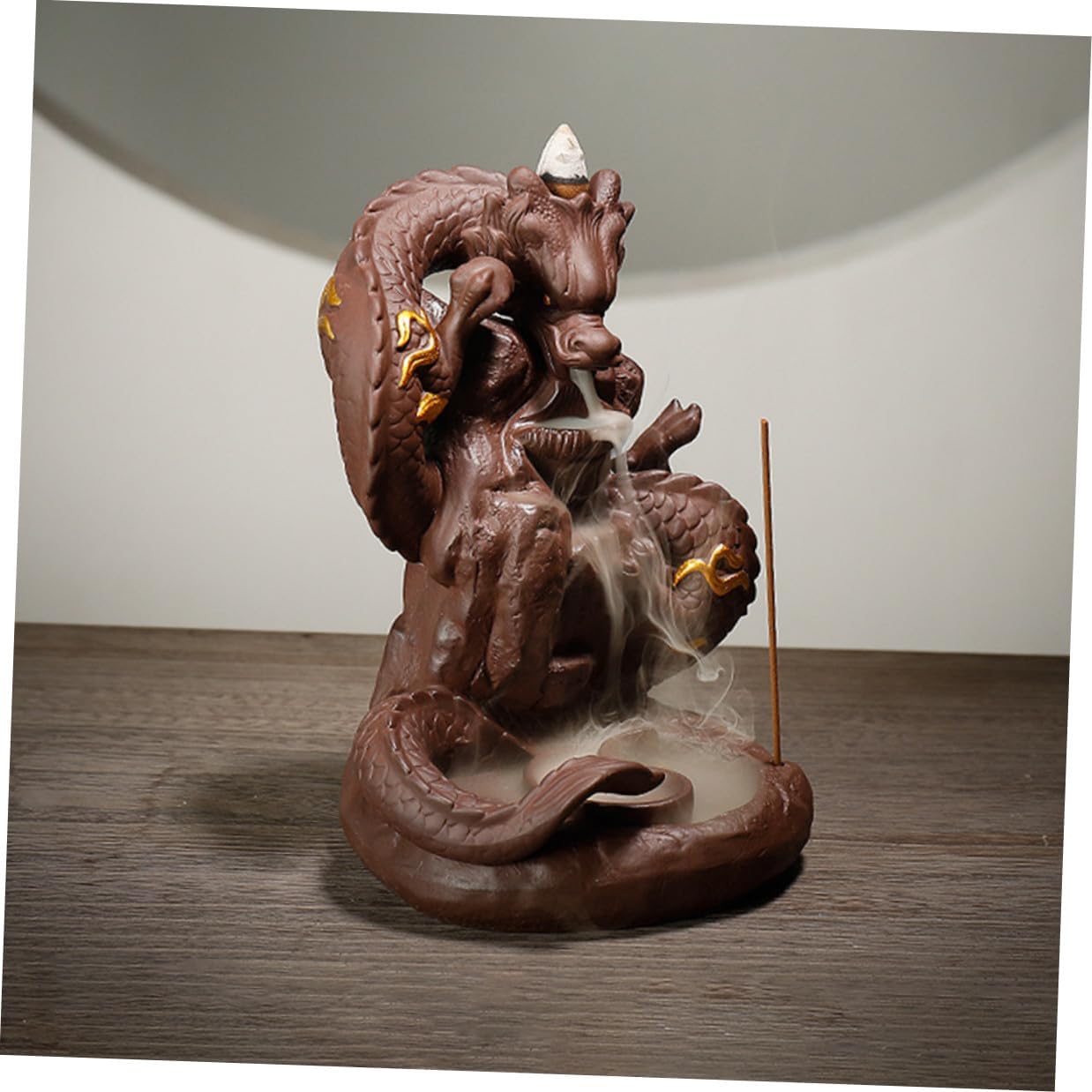 Package Include 1 x Backflow Incense Burner Characteristics -Material: Purple Sands -Size: About 18.50X14.00X12.00cm/7.27X5.50X4.72in -Color: Brown -Product Info:incense burner - One-piece molding, vigorous atmosphere, creative dragonappearance, unique charm Dragon Backflow Incense Holder. - Excellent workmanship, carefully down to every detail to give it an appearance Decorative Censer. - Thick material, our product is not easy to damage, which can be used for a long time. - It is made of good materials and has a creative dragon shape design. Fine workmanship and . - You can send it as a housewarming to your friends or family, they will love it Desktop Backflow Censer.Goods InformationIncense Holder Home Adornment Great for aroma.Purple Sand Craft Decor It comes with the delicate dragon appearance design, can help you completely relax, the level of life.Dragon Statue Decor This item is a decorative backflow incense burner with dragon shape which is well-made with , vivid and delicate.Dragon Censer Decor It is an excellent for family, friends, colleagues, etc