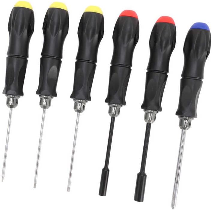 RC Repair Tool Set RC Model Repair Tools Kit for RC Boat Features:1. Steel Material: The screwdriver head is made of high speed steel with heavy duty steel tips that resist flaking and breaking, ensuring high performance.2. Size Markings: Beautifully designed handles are lightweight and each handle is clearly marked with a size marks for easy identification and use.3. Nonslip Handle: The ergonomic nonslip handle is made of plastic to provide positive torques, comfortable to the touch and soft to the touch, widely used in RC hobbies, bench work and accuracy engineering.4. 6 Pieces: 6 pieces of repair tools with different sizes of screwdrivers, more durable than ordinary bits to meet your different needs.5. Scope of Applications: RC car tool kit is suitable for dismantling most RC cars, RC boats, RC helicopters, RC quadcopters, multi axes FPV racing drones, etc.Specifications:Item Type: RC Repair Tool SetMaterial: Plastic,SteelHexagonal Screwdriver Size: Approx. 1.5mm / 0.06in, Approx.2.0mm / 0.08in, Approx. 2.5mm / 0.1inScrewdriver Size: Approx. 5.0mm / 0.2inSocket Screwdriver Size: 7.0BOX,5.5BOXApplications:for Model Airplane,RC Boat,RC Car,etc.Package List:1 x Set of RC Repair Tool Set (6 piece in 1 set)Note:1. Due to manual measurement, 1 to 3mm error is allowed, thank you! 2. Due to the difference between different monitors, the picture may not reflect the actual colour of the item.4. The images shown are not the actual item and are for your reference only.5. SERVICE TRANSIT TIME is provided by the carrier and excludes weekends and holidays. Transit times may vary, particularly during the holiday season.7. Due to stock status and time differences, we will choose to ship your item from our first available warehouse for . 8. We seller are not in charge of import duty, buyer is responsible