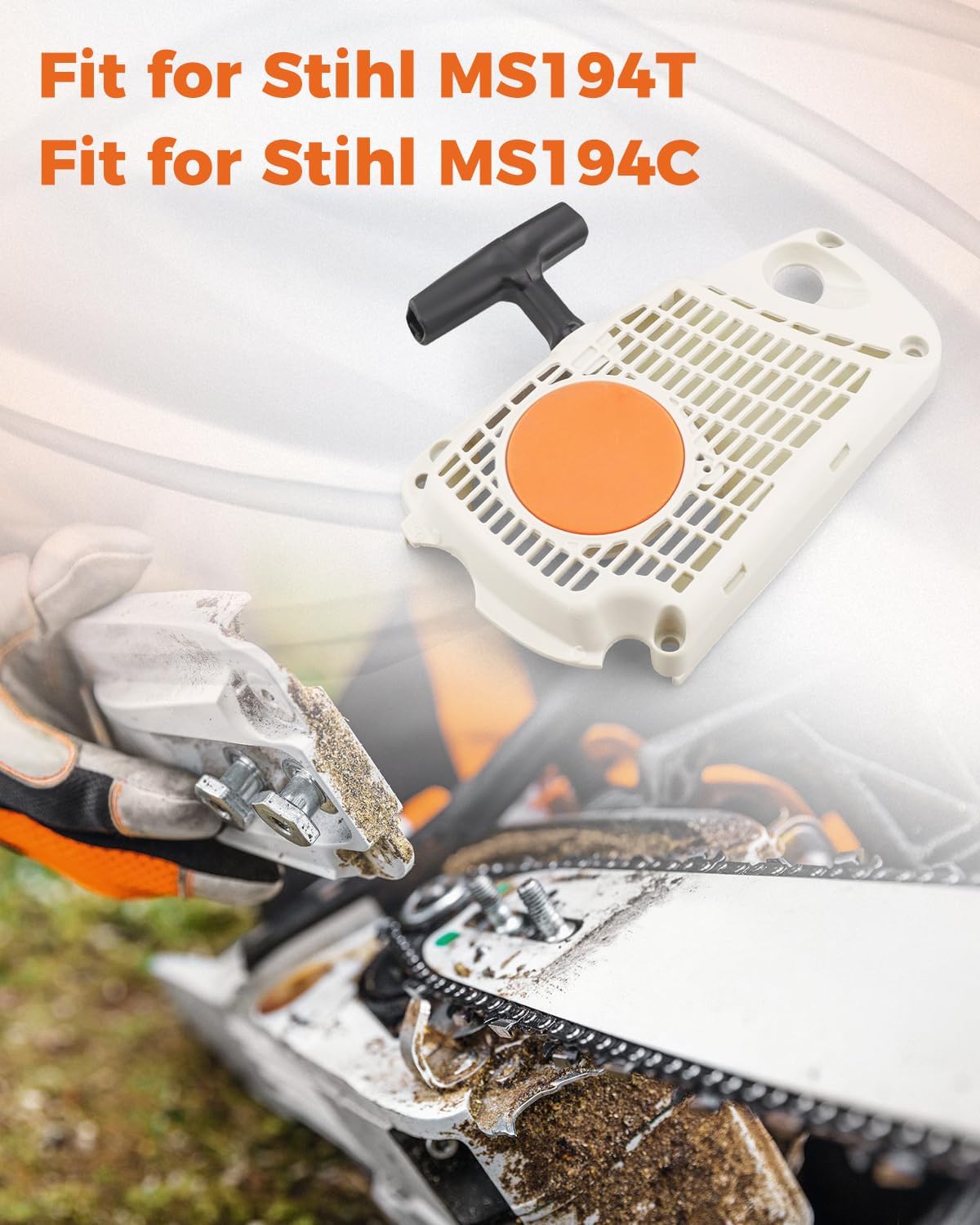 The recoil starter is a key component of the chainsaw starting system, primarily responsible for converting the manual pulling force into the initial rotation required for engine starting.As an integrated starter assembly, this component structurally integrates the basic components required for recoil starting, providing stable mechanical feedback during equipment startup.The plastic housing maintains a balance between weight and structure, helping the equipment return to a normal starting state and continue to complete the work requirements.