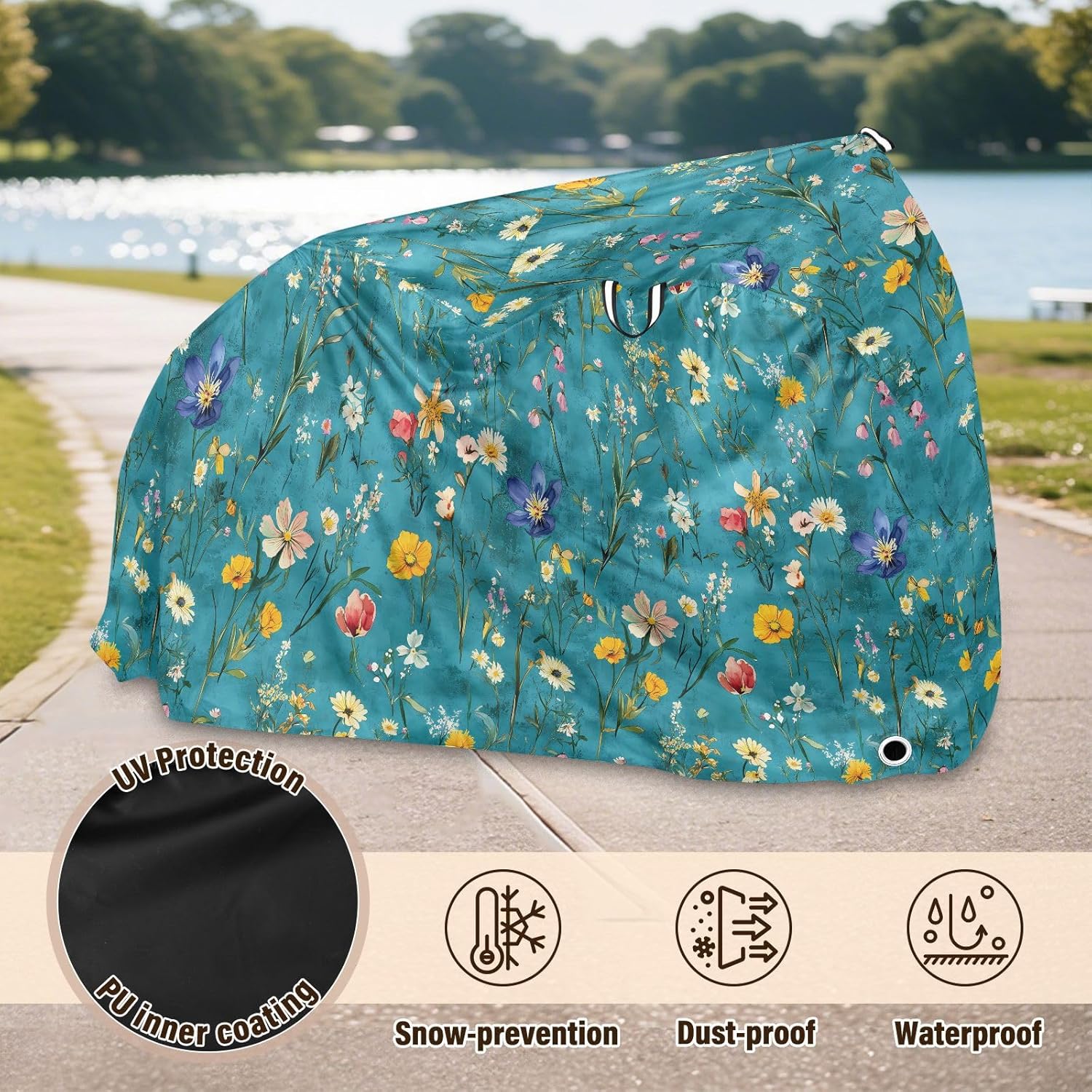Dimensions: 69*42*21.6Inches. Covers for Bike is suitable for most ordinary bicycles. Please measure the length, width and height of the before purchasing to avoid buying the wrong size.Material: Umbrella waterproof fabric. Outdoor Bike Cover has strong tear resistance and can effectively deal with some extremely complex weather conditions, providing comprehensive protection for your .Product Function: This Outdoor Bike Cover not can prevent rainwater from wetting the bike body in rainy days, but also can block direct ultraviolet rays, providing shading, heat insulation and protection against rain and snow weather.Safety & Anti-theft: Lock holes are reserved at the front wheel position and lock buckles at the rear wheel position to prevent wind dissipation, making it convenient to use and achieving an anti-theft effect. Bike Cover is convenient to use and can be easily folded into a portable size. When not in use, it can be put into a storage bag.Outdoor Accessories: This Outdoor Bike Cover provides a protective guarantee for your beloved car and is an essential accessory for outdoor camping. It can also be given as a present to your fellow colleagues and friends.