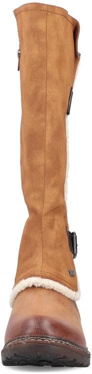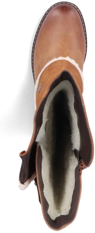 These camel Brown Rieker high boots have it all: comfort, function and, of course, style. A zipper allows for a quick and easy entry. The grippy sole provides sure-footedness. Your feet are guaranteed to stay warm all day long thanks to the cozy lining and also dry thanks to the RiekerTEX technology. Favourite shoe potential.� Material: Synthetic leather. Heel Height: 1.5"