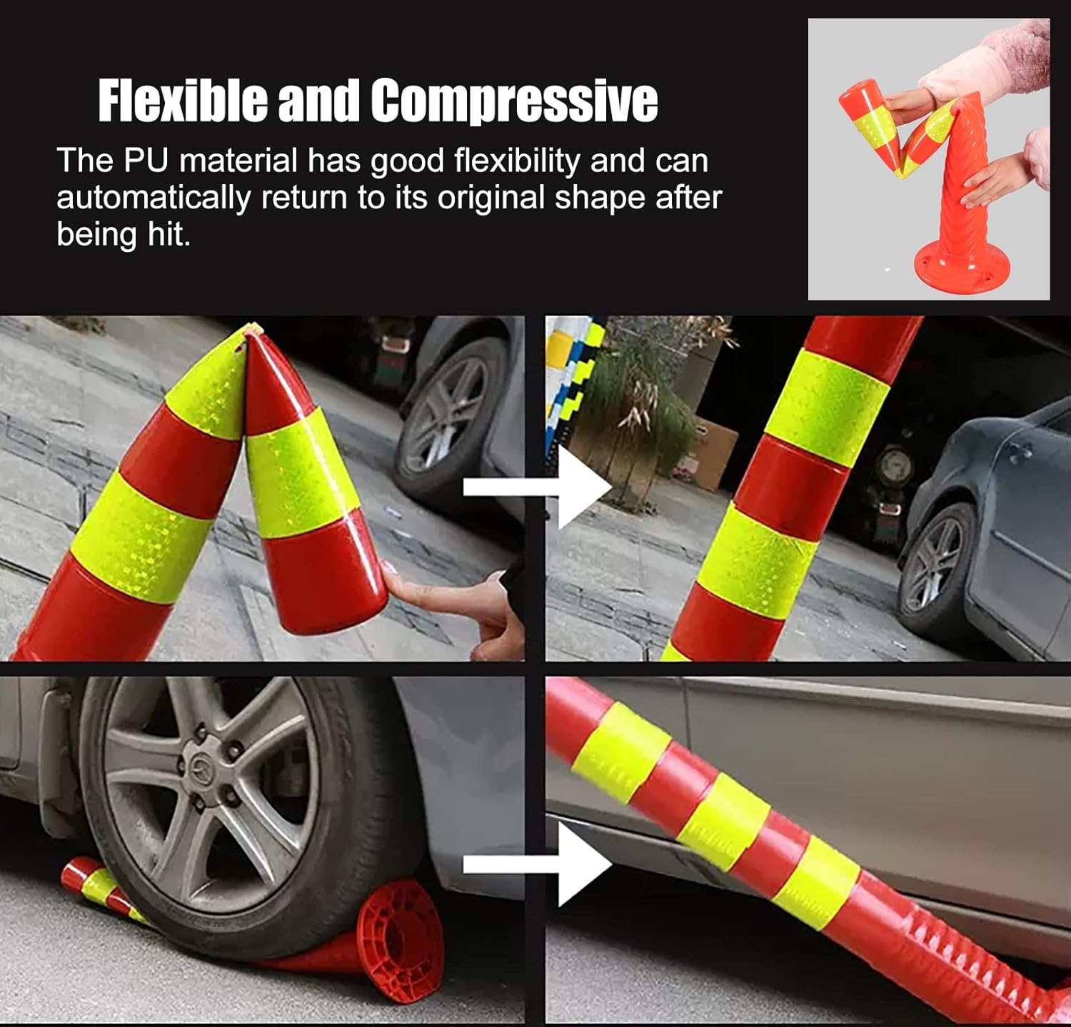 Lockable Parking Safety Barrier: Description: The safety bollard can give you significant security,you can put it in your workshop to take care of your equipment. It would also be a good idea to place it on entrances,parking lots,sidewalks or cycle paths. Specifications: Material: PU Plastic Pole size: diameter 8cm (3.1in) Base size: 20cm (7.8") diameter Post height: 76cm(30 in) Installation: floor mounted Features: Bright reflective band can improve visibility. Each bollard has 3 pre-drilled holes,easy to install. The premium baseplate ensures maximum solidity and stability for long time use. The barricade posts are often put outside the entrance of expressways,parks,neighborhoods,intersections,parking spots,and streets. Package contents: Caution Cones (Includes installation accessories: screw kit) Precautions: 1. Manual measurement,product size and physical appearance may have an error of 1 ~ 3cm. 2. Products are taken in kind,but due to light,equipment,shooting angle and computer resolution,the physical and photos received may be different,in kind prevail. 3. Pictures for reference,the specific size for the size of the purchase.