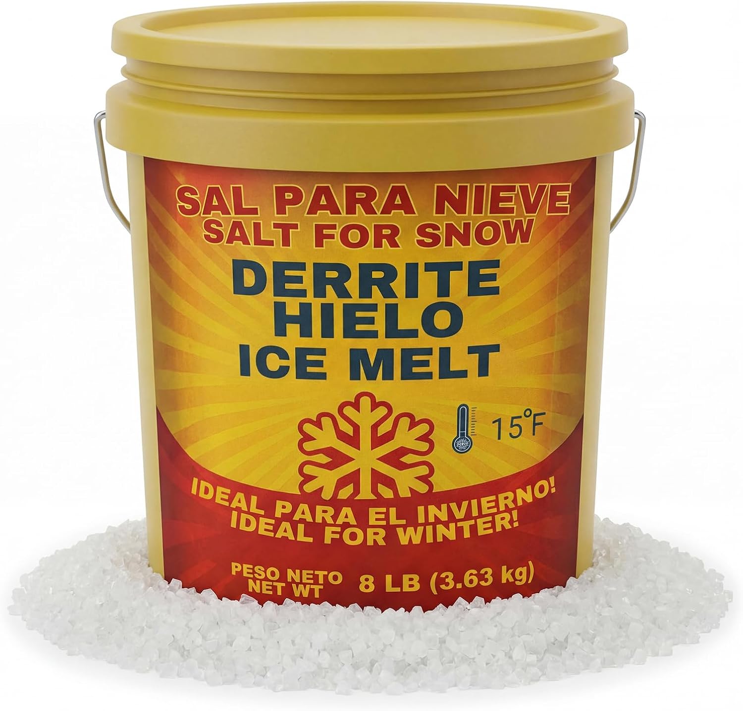 Sal Para Nieve – Salt for Snow Ice Melt is a reliable rock salt deicer designed to help melt snow and ice on driveways, walkways, steps, and other outdoor surfaces during winter conditions. This pail provides dependable ice control for residential and light commercial use. Formulated with natural rock salt, this ice melt works by lowering the freezing point of water to help break the bond between ice and surfaces, making snow and ice easier to remove. The fast-acting performance helps improve traction and safety during cold weather.