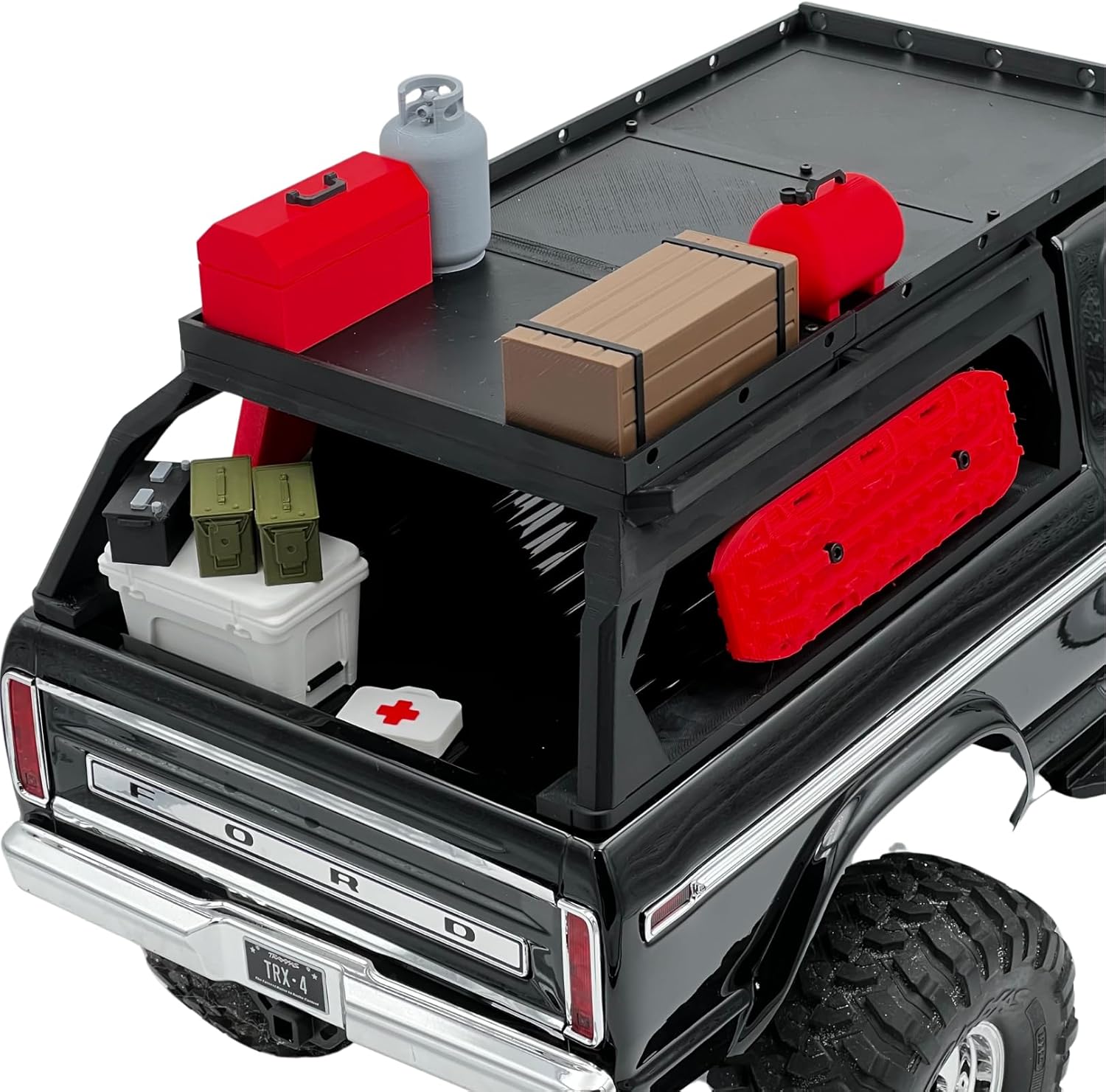 Trx-4 1/10 Scale Ford F-150 Bed Rack Does Not Fit Small Trx4m, This is for large 1/10 Scale Truck Includes Gas Cans And Traction Boards Includes Hardware Roof Rack Is a Screw Together Design. Replacement Parts Available Does Not Fit Chevy K-10 Made In The USA 3d Printed From Durable ABS Plastic Does Not Include Truck or Scale Accessories Pictured. Only Includes 2 Gas Cans And 2 Traction Boards Prints may have some minor surface imperfections