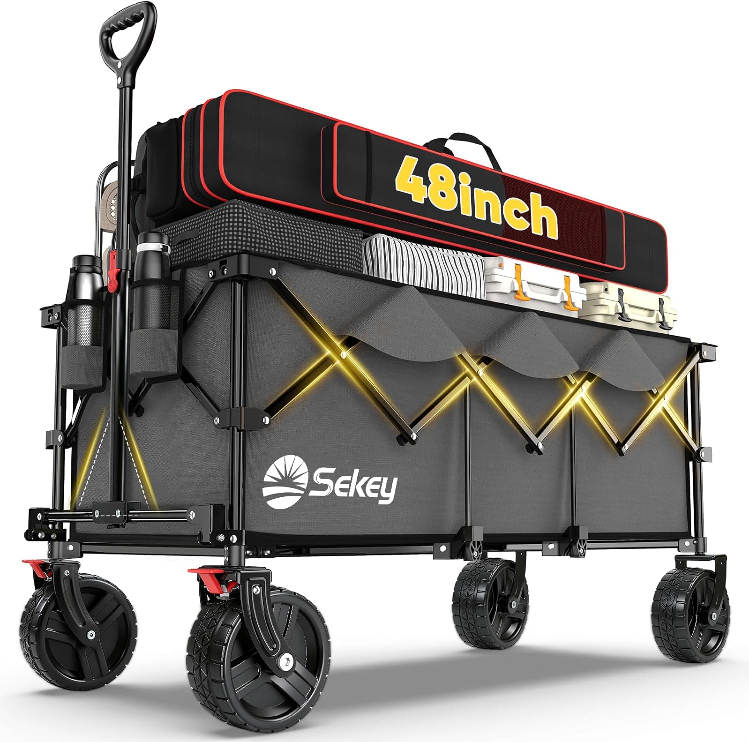 | Item Type Name | Sekey Collapsible Foldable Extended Wagon with 440lbs Weight Capacity, Heavy Duty Folding Utility Garden Cart with Big All-Terrain Beach Wheels & Drink Holders.Grey |