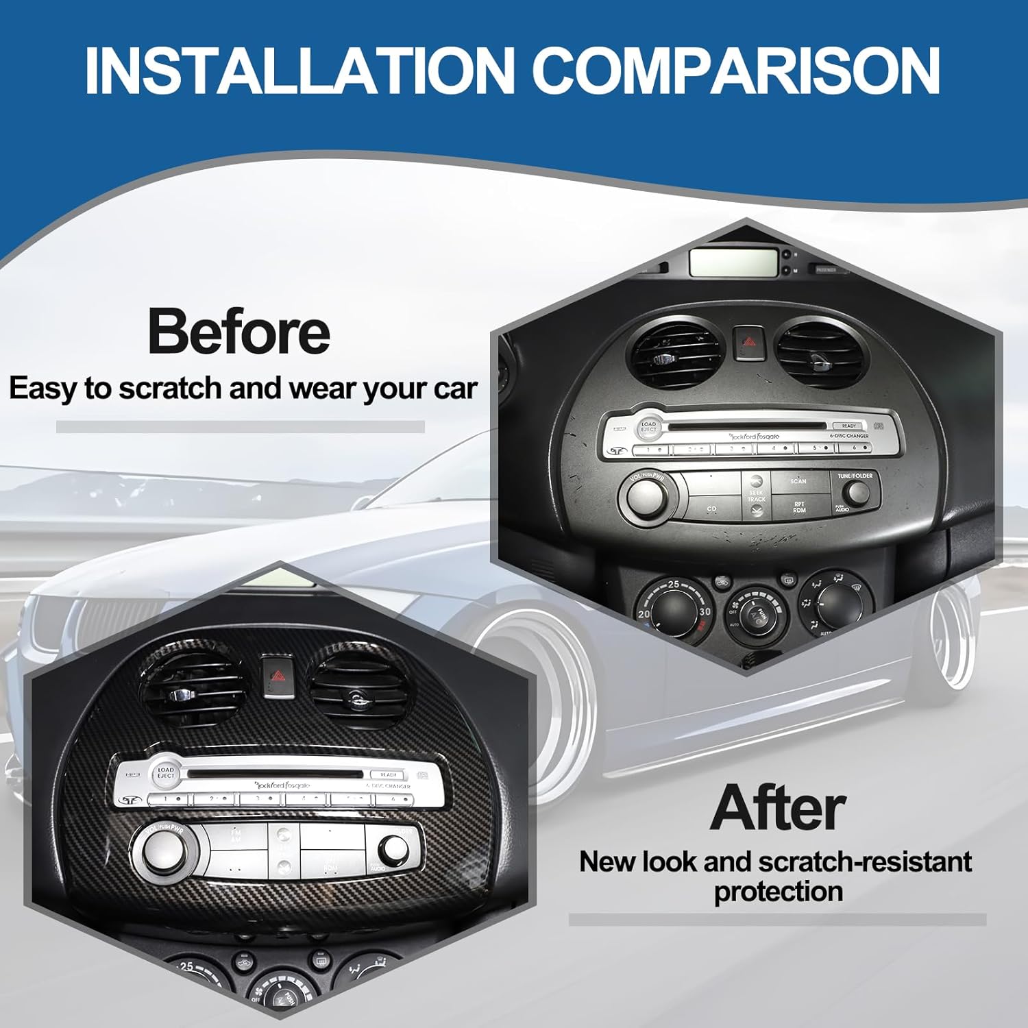 Decorate Your Center Console and Protection it From Scratch.Please select the appropriate part cover trim according to your model and yearCentral Control Air Outlet Trim Frame Perfect fit, protect your car, also cover the original scratches and enhance the taste of the interior.Product features: Light weight, Durable, Scratch-resistant, Easy to install.Fitment: - Central Control Air Outlet Trim Frame Compatible with Mitsubishi Eclipse 2006 2007 2008 2009 2010 2011.Material: Central Control Air Outlet Trim Frame Made of ABSCentral Control Air Outlet Trim Frame 100% brand new and high quality guaranteed Easy to use and to operate at affordable prices.Bring the most beautiful colors to your interior.And can bring the protection of car interior.No need to punch holes, no screws, direct installation.Installation method:1.The back of the trim cover come with 3M tape.2.Wipe clean the around in advance, and keep dry and clean.3.Tear off the tape and press it tightly, and the installation can be completed quickly and easily.4.If the weather is cold. Please use the hair dryer(hot air blowing)in order to provide the best viscous.5.Please keep dry after been install at least 72 hours. Or it will easy to fall off.6. Any question about installation, please feel free contact us.Package Include:1 PCS X Central Control Air Outlet Trim Frame .NOTES: Please check whether this item can fit on your car before purchasing.