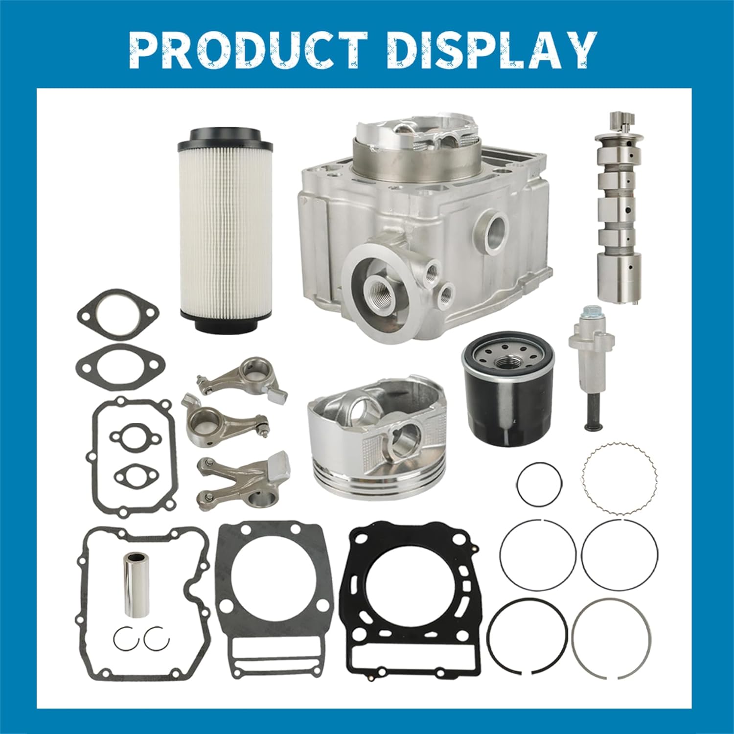 Compatiblity:Replacement for Polaris Ranger 500 1999-2012Package: Circlips, CylinderPiston Rings, Pistons, Wrist PinsGasket Set, Valves, CamshaftReplacement for Part Number:3087221, 30872243089966, 30868113086200, 30872473084910, 3086443Note: Please make sure to carefully compare the photo with the old parts, check the part number