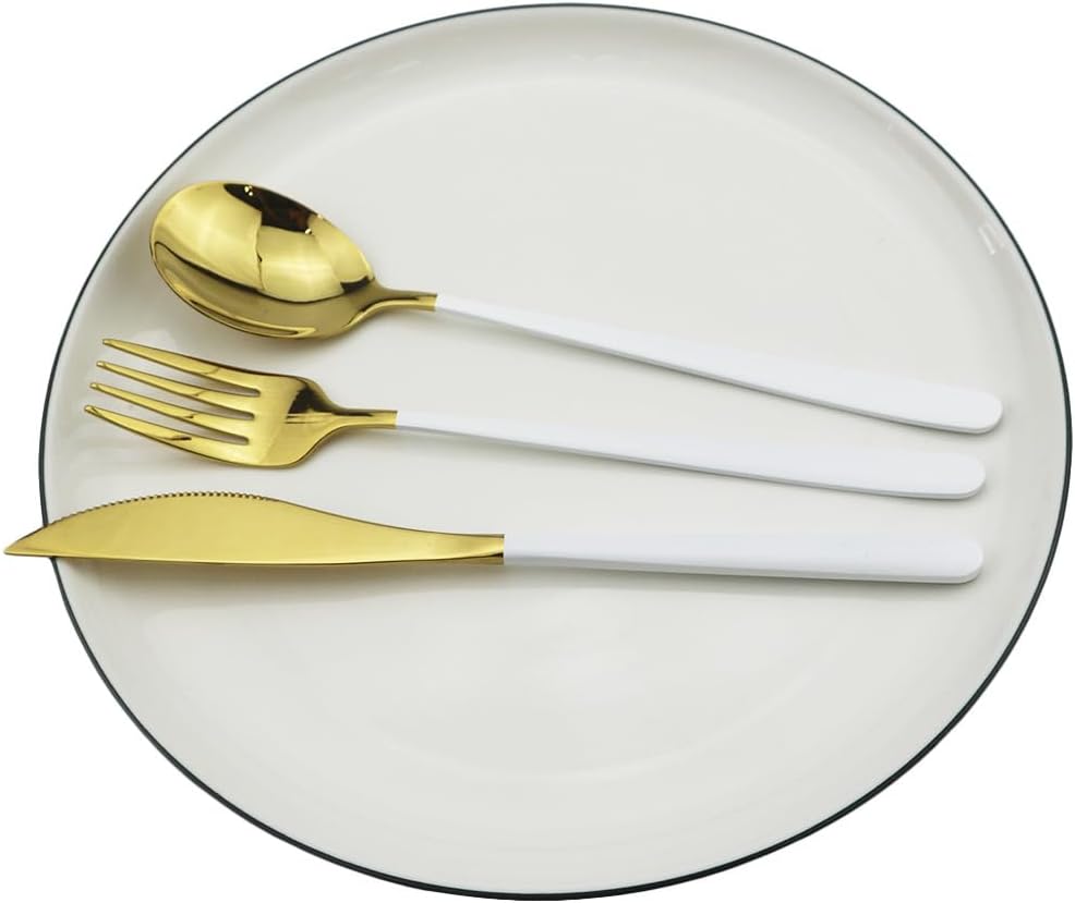 Material: Stainless steelPolishing process: Cloth polishing (mirror polishing)Set list: Knife, fork and spoonStainless steel material: 304Specifications: Silver three-piece setSpecifications: Gold three-piece setSpecifications: Platinum three-piece setSpecifications: White and silver three-piece setSpecifications: Black and gold three-piece setSpecifications: Black and silver three-piece setSpecifications: Pink gold three-piece setSpecifications: Pink silver three-piece setSpecifications: Blue and gold three-piece setSpecifications: Blue and silver three-piece setProduct quality level: first-class productProduct category: Knife, fork and spoon set.About our BrandOur brand is GOODJAYVEN. We have always been committed to Household items. Do our best to bring more creative products to our customers.