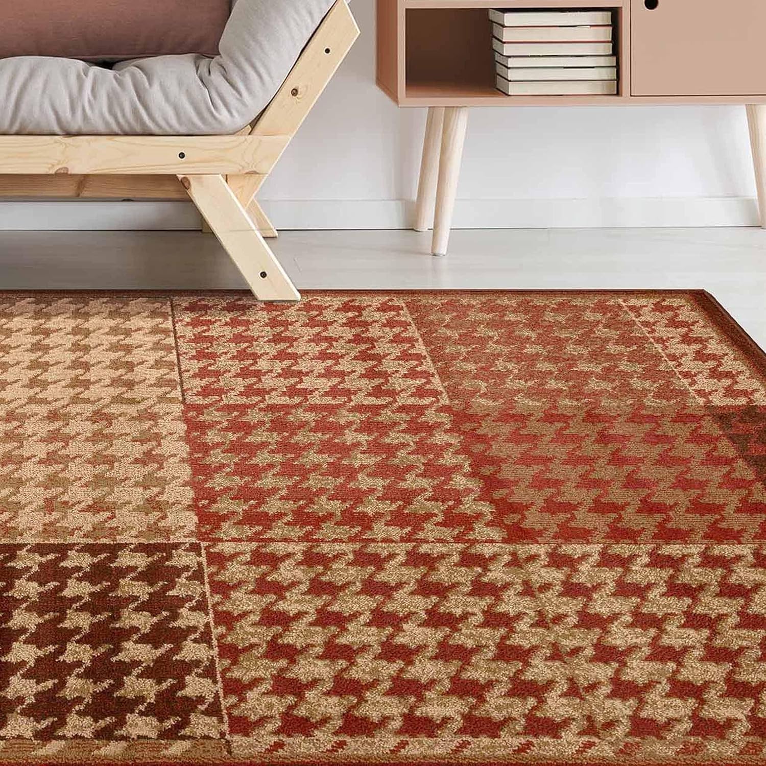 Revamp your home decor with the dazzling modern style of the Natte Indoor Area Rug by Superior. Crafted from durable polypropylene fibers, this beautiful rug has a cozy feel that can withstand high-traffic rooms with children or pets. The plush 0.39 inch rug thickness is easy to clean, sturdy, and durable. Displaying color blocks layered with a houndstooth pattern, this dynamic rug is the perfect accent to your modern farmhouse, contemporary, or rustic home style. Available in mocha and beige color options, this versatile rug will tie together your home decor seamlessly.