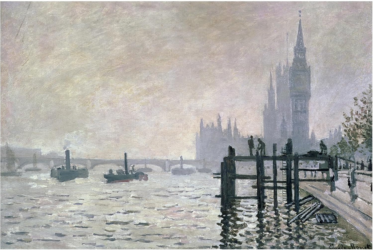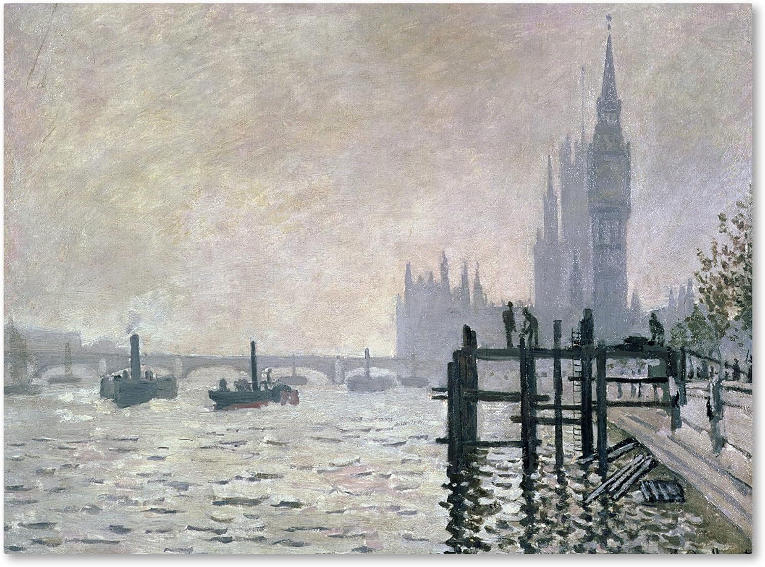 This ready to hang, gallery-wrapped art piece features boats on water with buildings in the background and docks on the right. Claude Monet was a founder of French impressionist painting, and the most consistent and prolific practitioner of the movement's philosophy of expressing one's perceptions before nature, especially as applied to plein-air landscape painting. Monet himself was enchanted by the vitality of outdoor settings as shown in many of his works. Giclee (jee-clay) is an advanced printmaking process for creating high quality fine art reproductions. The attainable excellence that Giclee printmaking affords makes the reproduction virtually indistinguishable from the original piece. The result is wide acceptance of Giclee by galleries, museums, and private collectors. Gallery wrap is a method of stretching an artist's canvas so that the canvas wraps around the sides and is secured a hidden, wooden frame. This method of stretching and preparing a canvas allows for a frameless presentation of the finished painting.