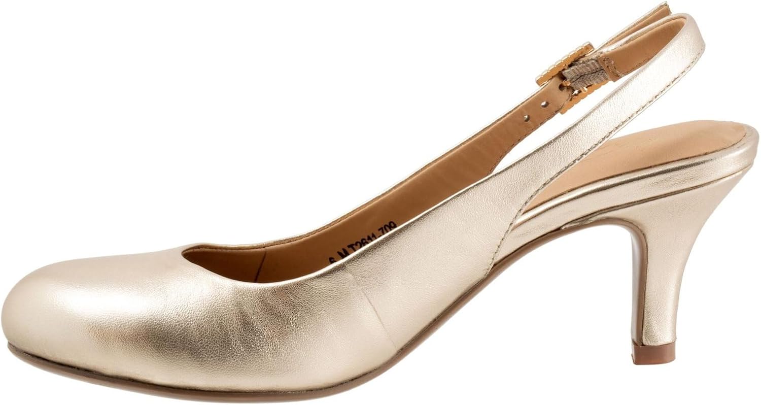 Elevate your bridal style with timeless elegance in the Trotters Lexi Bridal Pump. Crafted from premium leather and set atop a graceful 3" heel, Lexi offers a classic almond toe and a chic slingback silhouette with an adjustable outside buckle for a custom fit. Whether you're walking down the aisle or dancing the night away, this pump brings understated glamour and comfort to your special day.