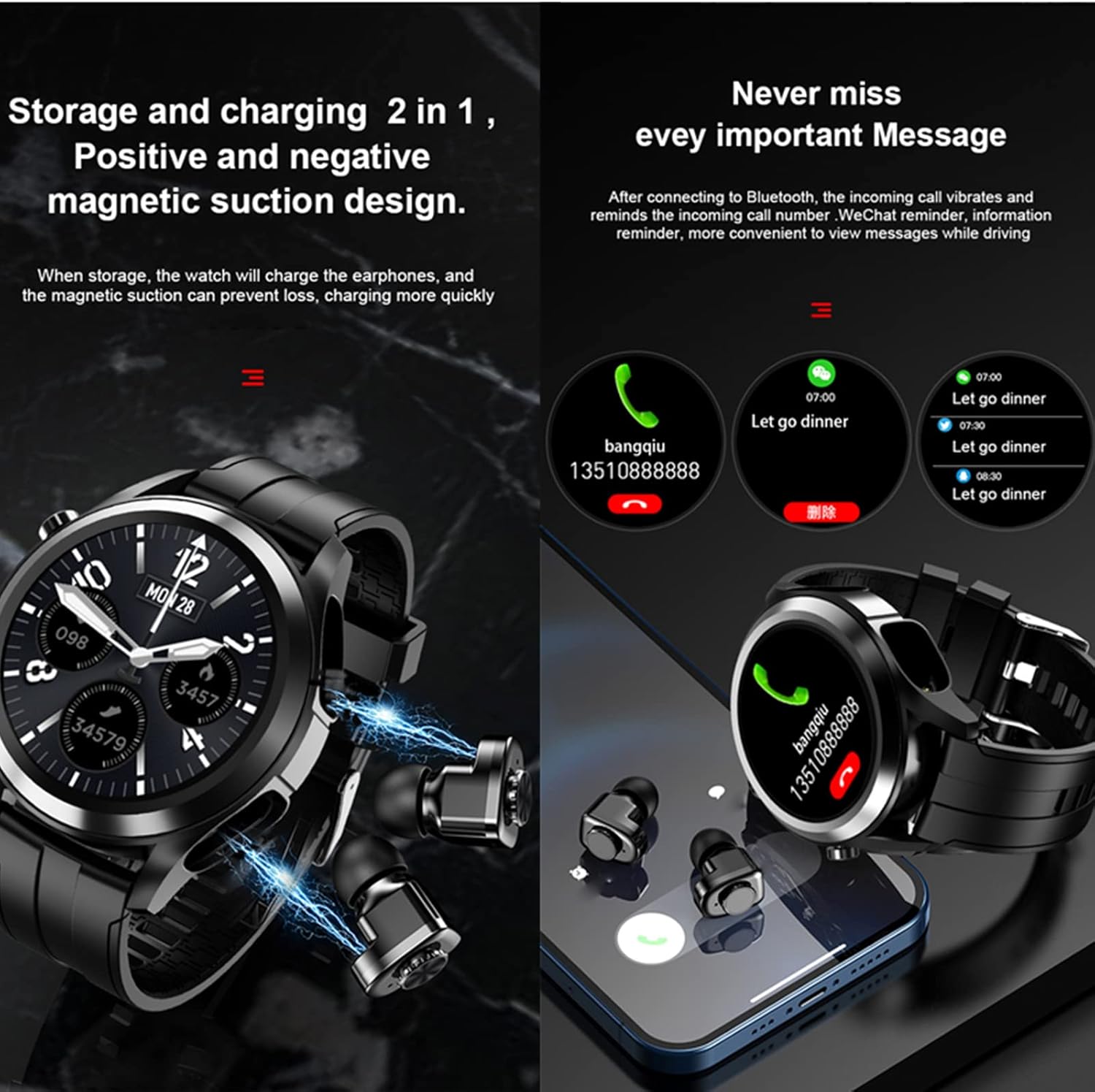 | Additional Features | TWS bluetooth earphone and watch 2 in 1 |