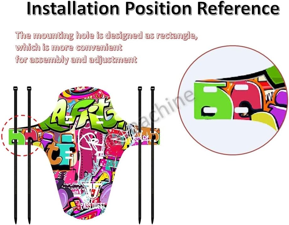 Dear customer,we are manufacturer,our brand is txmachine,we had sell products in 15 years,our product is high quality,if customer has some questions,please feel free to contact us,thanks. Specification: Weight: 28g 4 colors:colorful,purple ,Red ,black Size: 12.2*10.6 in (310*270mm) Material: PP Thickness:0.03in (0.8mm) Feature: 1.With 10pcs cable ties 2.Perfect fender for any 26/27.5/29inch Mountain Bike. 3.Suitable for bike model:AM,DH,FR,ENDURO 4.Easy to install and remove, fit for mountain bike. 5.Lightweight,sturdy,cool design. 6.The most powerful bike front fender. 7.Its extremely durable and protects your suspension fork seals 8.Installation Position Reference”The mounting hole is designed as rectangle, which is more convenient for assembly and adjustment 9.With reference line, easy to cut 10.Both front and rear ends can be used 11.Multiple styles available:Use it,you will not be afraid of muddy roads,Keep the dirt and water far away your face 12.Super toughness, can be free deformation Application: It can fit perfectly in most of bike,such as mountain bike,road bike and more. Package included: Bike fender*1pcs Manual*1pcs Cable ties*10pcs Shipment: We ship it by post,customer can get this item in your hands in 7-15 days,it is quickly,thanks.