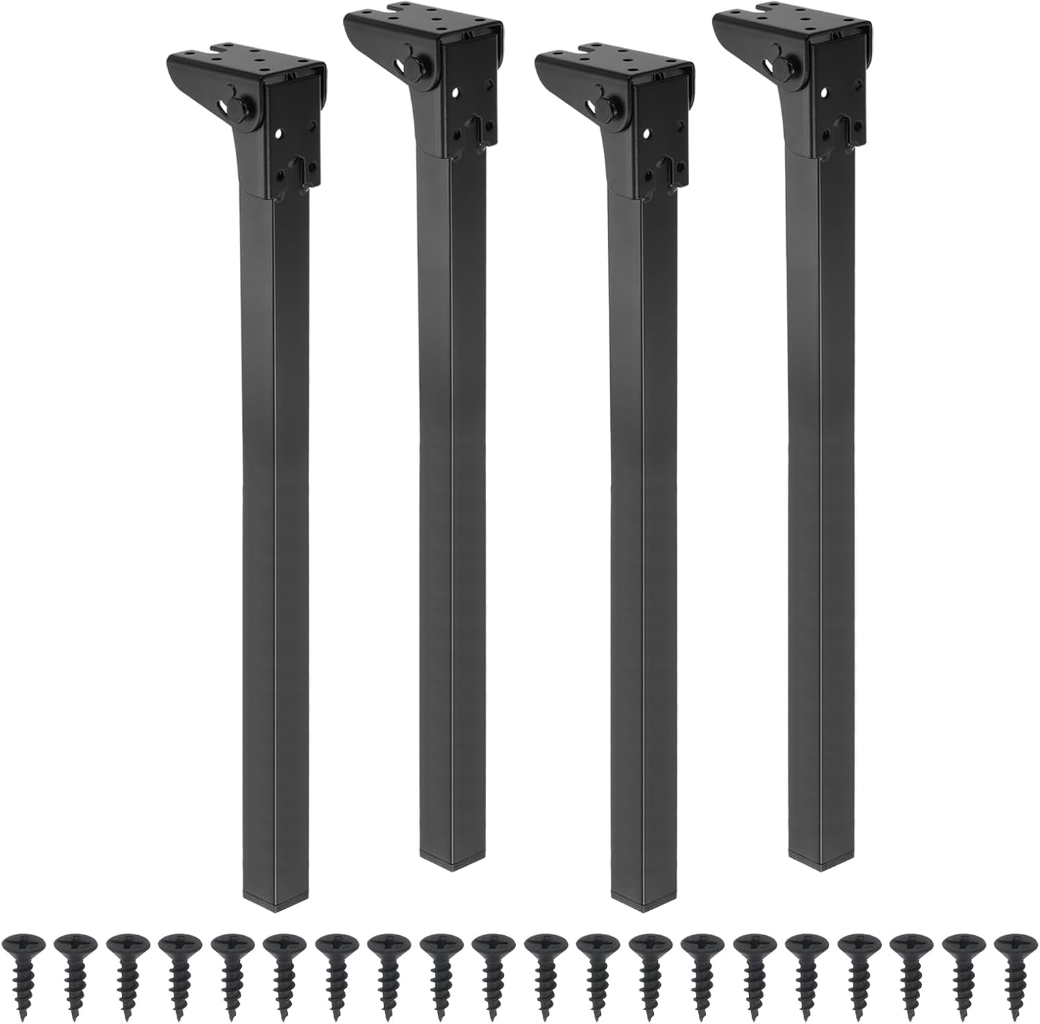 Descriptions:1. Material: The folding table legs are made of iron with black coating on the surface, which is rust-proof and load-bearing, durable, and easy to clean.2. Design: Spring-type button design, 90-degree folding, can easily fold the legs anytime, anywhere, with a rubber protector at the bottom, can effectively reduce the noise of table movement, while protecting the floor.3. Installation: It can be installed directly with screws, is flexible in design, is suitable for multiple directions, and can be folded up for convenient storage when not in use.4. Application: Foldable table legs can DIY furniture, just replacing the table legs can improve the height of furniture, cabinets, nightstands, sofas, chairs, shelves, desks, coffee tables, living room tables, laptop tables, etc.Specification:Material: IronLength: 37cm / 14.6" Square Tubing Size: 25 x 25mm / 1" x 1"Folding Thickness: 31mm / 1.22"Mounting Hole Diameter: 5mm /0.2"Mounting Hole Distance: 25mm / 1"Package Content: 4pcs x Folding Furniture Legs