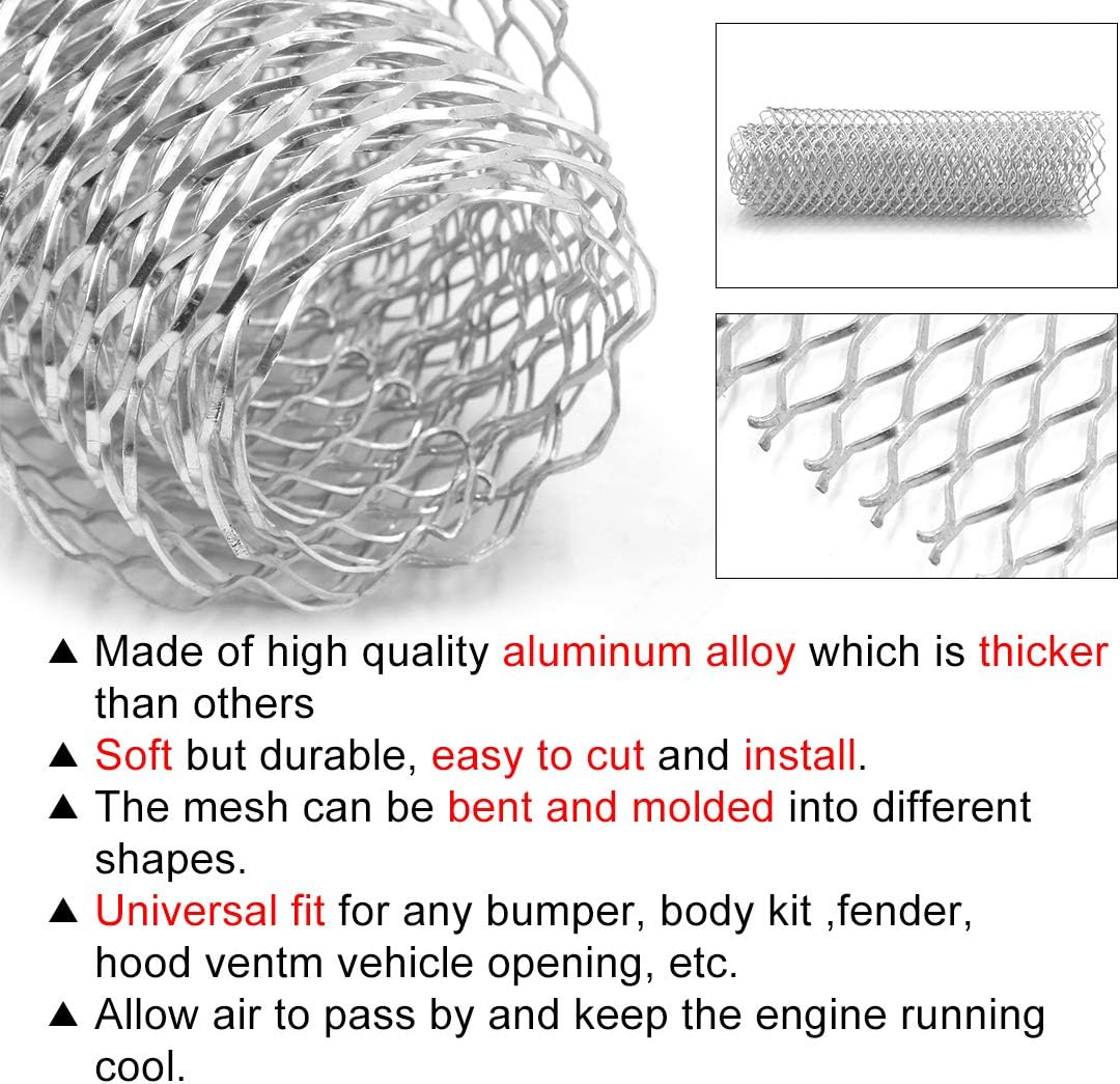 Made of aluminium alloy.Soft but durable,easy to cut and install.Prevent the destruction of the process of moving foreign objects on the vehicle interior parts.Universal Fit for any bumper, body kit, fender, hood vent, vehicle opening, etc.Protect your intercooler, radiator, and engine bay from road rocks, debris, garbage, leaves, etc.Grilles provide a great alternative to transform your vehicles appearance to the next level.Grilles not only serves as the centerpiece of your vehicle, it also prevents debris and or harmful things from damaging radiators.While allowing air to pass by and keep the engine running cool.The mesh can be bent and into different shapes.Specification:Color: Silver ToneMaterial: Aluminium AlloySize: 40 x 13inch/ 100 x 33cmMesh size: 25mm x 11mmFit for: All kind of carsNote:Please allow 1-3mm errors due to manual measurement.Package Include:1 x Car Grille