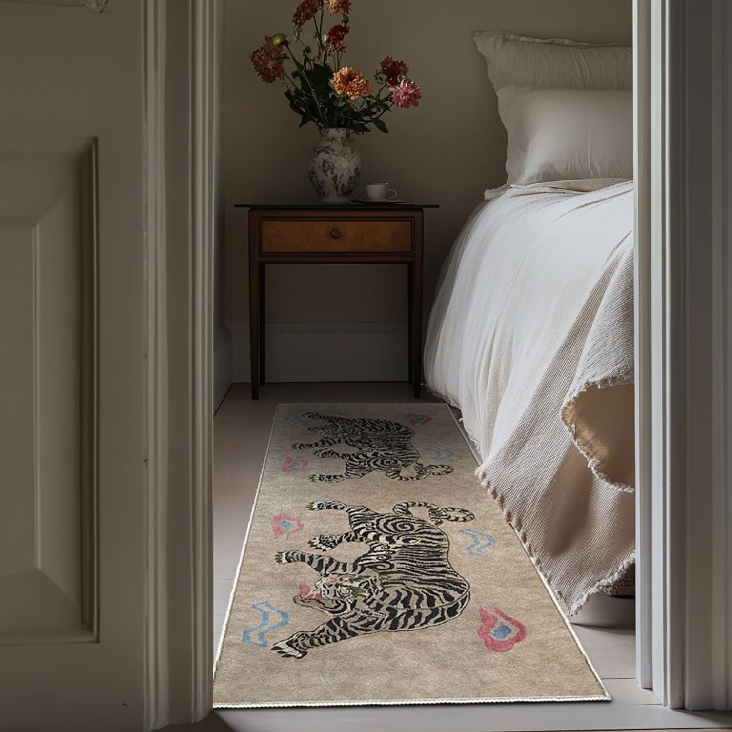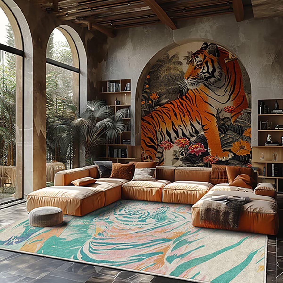 This tiger rug is made of high quality soft Polyester. It's very durable and easy to clean. It has a good effect on anti-skid way. Our fluffy rug is widely used in home decor,It can be used as kids bedroom rug,boys and girls room rug,baby Play mat,living room rug or study mat. There are many styles. Perfect addition to your living room,beautiful stylish doormats to add more fun to your home. Pay attention to: For the convenience of logistics and transportation,this item will be fold to ship. When you receive your item,you may see some folds. But it's OK. You just need to place it for 3-5 hours,and these folds will disappear. Please rest assured to buy!