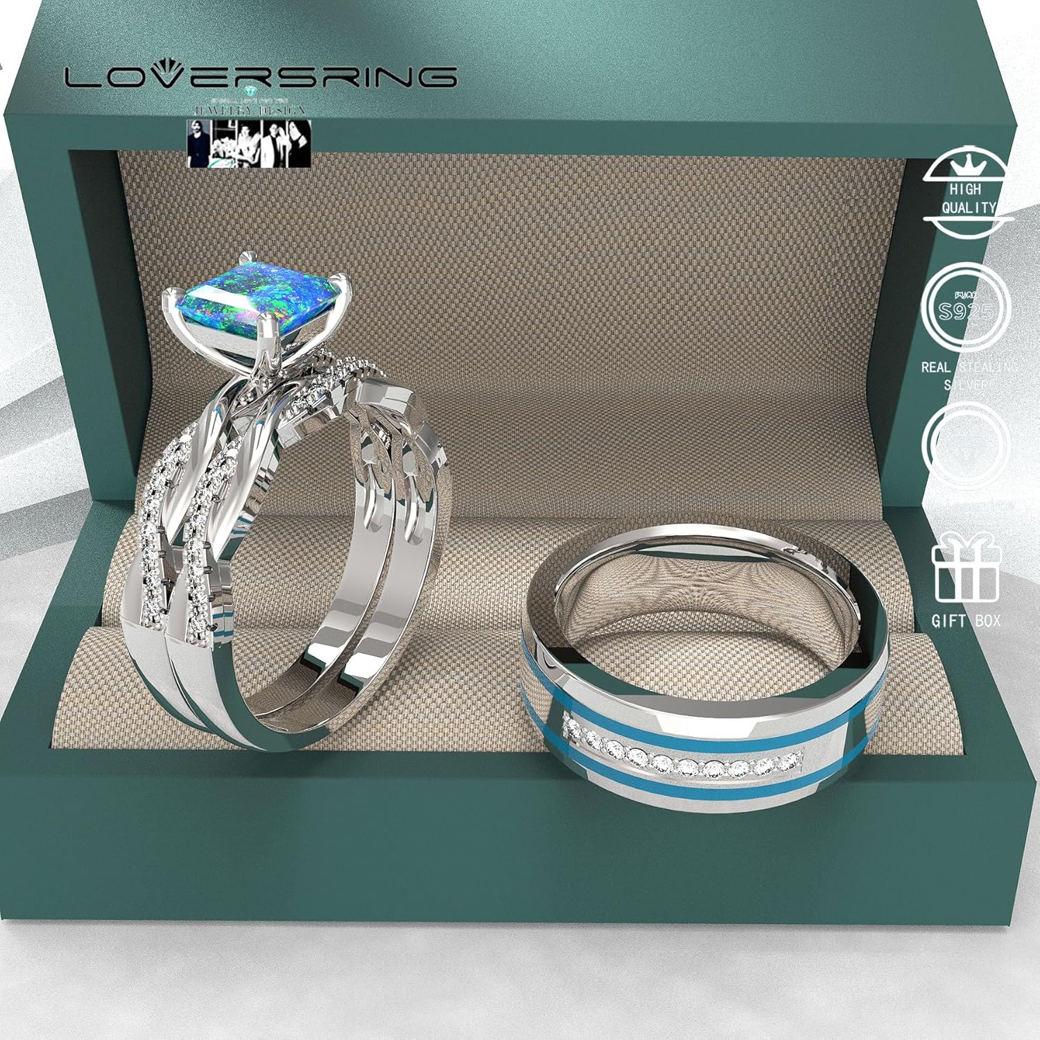 1.Complimentary Gift Bag with Every Purchase: Each ring comes with a cute jewelry box, making it an ideal gift for yourself or your loved one. To ensure the longevity of your ring, we recommend removing it while sleeping and storing it in the provided fabric bag or pouch. 2.Accurate Size Measurement: It is crucial to measure your ring finger size accurately before making a purchase, as rings cannot be resized. We recommend getting an accurate ring size measurement at a jewelry store for the perfect fit. 3.Suitable for Special Occasions: Our beautiful 925 sterling silver wedding engagement ring set is perfect for various special occasions. They can be used as couple rings, Valentine's Day gifts, anniversary rings, wedding sets, engagement rings, eternity rings, promise rings, or wedding bands. The women's engagement ring features a round cut stone at the center, accompanied by matching bands. The stones are AAA grade lab-created diamonds in white, renowned for their high transparency and refractivity. The rings are made from hypoallergenic 925 sterling silver jewelry, while the men's ring has a width of 8mm and thickness of 2.6mm, crafted from high-quality titanium with scratch-resistant properties. 4.Quality Craftsmanship: Our couple rings are meticulously crafted with precision and attention to detail. The rings feature a sleek and modern design, perfect for expressing your unique love story.