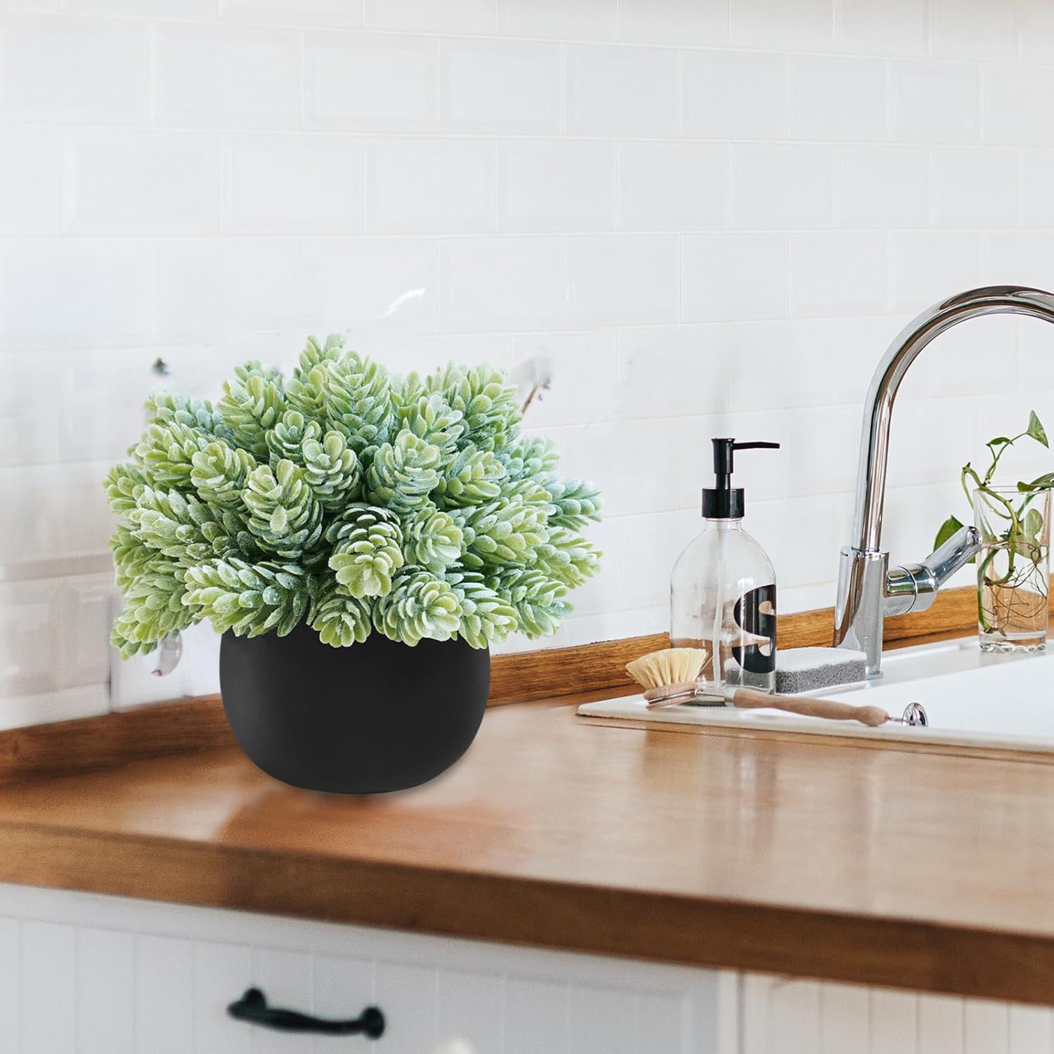 Add a Pop of Color and Life to any Space with these Assorted Artificial Succulent Plants in Black Concrete Pots:- Combine them with other faux plant decor to create a lush botanical display.- Display them as a coordinated set or scatter them individually to add a touch of greenery wherever needed.- Place these mini plants on your tiered tray, wood box, or other container for a charming farmhouse-inspired centerpiece.- Elevate your decor by pairing the small plants with macrame plant hangers.- These decorative plants can be used as placecards at events, adding a unique and natural element to your table settings.- These faux succulent plants decor are suitable for any place in your home, apartment, studio, office, shop, and garden.- They can be effortlessly placed on various surfaces such as floating shelves, entryways, bathrooms, windowsills, dining tables, coffee tables, bookshelves, mantels, kitchen countertops, cabinets, entryway tables, dressers, nightstands, or office desks.- These fake potted succulents make a great gift for various occasions such as housewarmings, birthdays, weddings, baby showers, parties, holidays, sympathy, anniversaries, and special events.