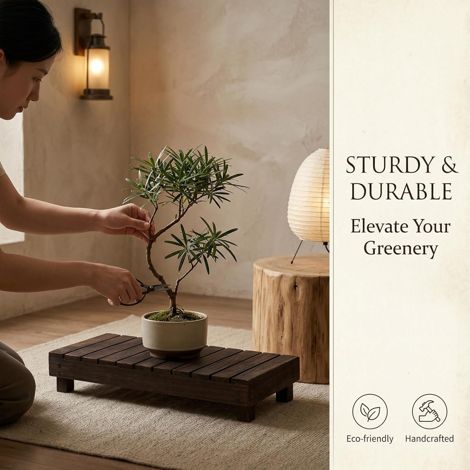 【Product name】:Wood plant stand、Plant stand for indoor plants、Outdoor plant stand 【Color】: Dark Brown. 【Plant stand】-Size:12 inchx12 inchx4 inch;23.6 inchx8 inchx4 inch. 【Versatile】: Great risers for corner inside house, living room floor, office, bedroom, indoor, outdoor, porch. 【Durable & Sturdy Structure】- Our plant stand adopts the structure of 4 legs and thick wood borad which can be hold up wonderfully for years and can Hold Up to 200 LBS. 【Minimalist Design】- With the minimalist design and wooden texture stand, Our plant stand have a stylist appearance which will not only be compatible with any home decor and furniture, but also bring a delicate touch of the elegant to your home.