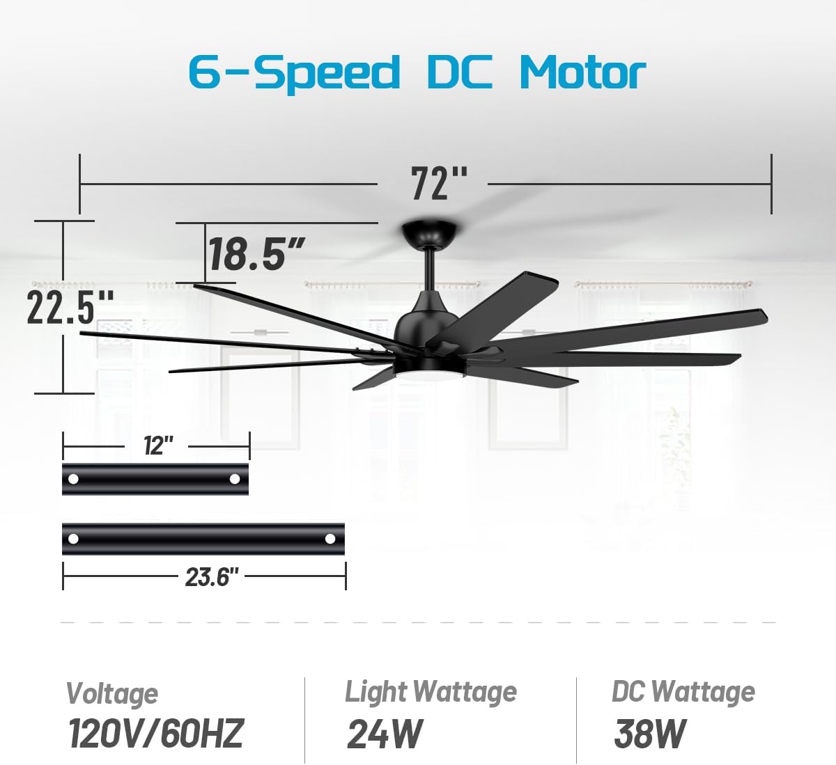 | Standby Power Shutoff | [POI] Partial Obtainable: The fan is energy-efficient with high airflow, but the exact electrical power consumption is not specified. |